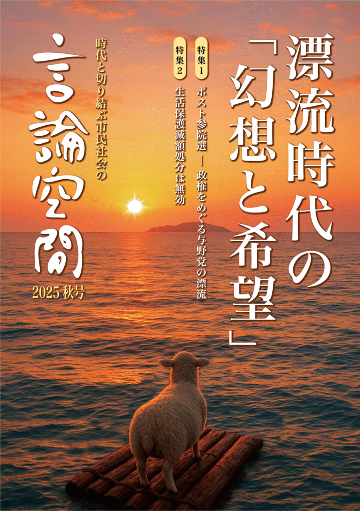こっちでは猛暑、こっちでは豪雨。こっちでは洪水、こっちでは渇水。獲れていた魚がいなくなり、別の魚で魚市場は活性化。自然界の動きと同じように、人間の社会と政治のあり方も激変が広がっている。この秋号の表紙コピーは「漂流の時代の『幻想と希望』」としました。私がなるほどと思った指摘がいくつかありました。(参政党の)「注目すべきは極右的主張より政治的無関心層」(古谷経衡さん)、「国際公共財としての覇権国」(蜂谷隆さん)、「リベラリズムを中心とした政権交代は幻想だ」(小林正弥さん)、「パレスチナと『人の道・外交』」(阿部とも子さん)。混沌とした時代の流れを切り裂くうえで現状を直視し新たな視点を導入したり、それぞれの従来の発想や思想の反省しながら時代と格闘する論考に出会うのは雑誌の醍醐味です。